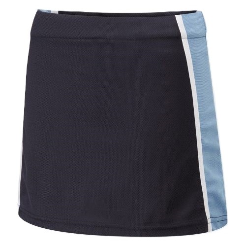 - Navy blue skirt with pale blue panels (for team players, optional for others)